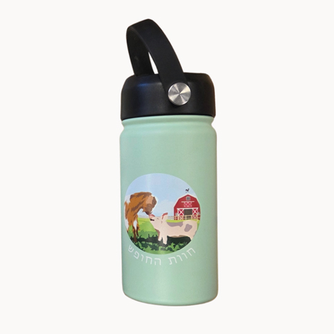 בקבוק 330ml של החווה מהמם ואיכותי עם קש, שומר על טמפרטורה, מיועד לשתייה קרה